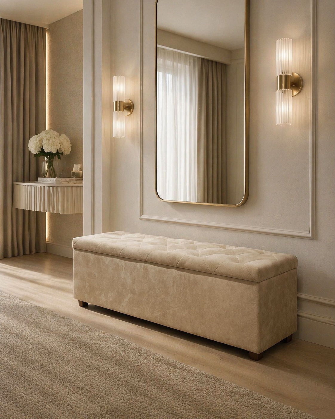 Vizuálne uzatvára posteľ a dotvára harmonický celok.